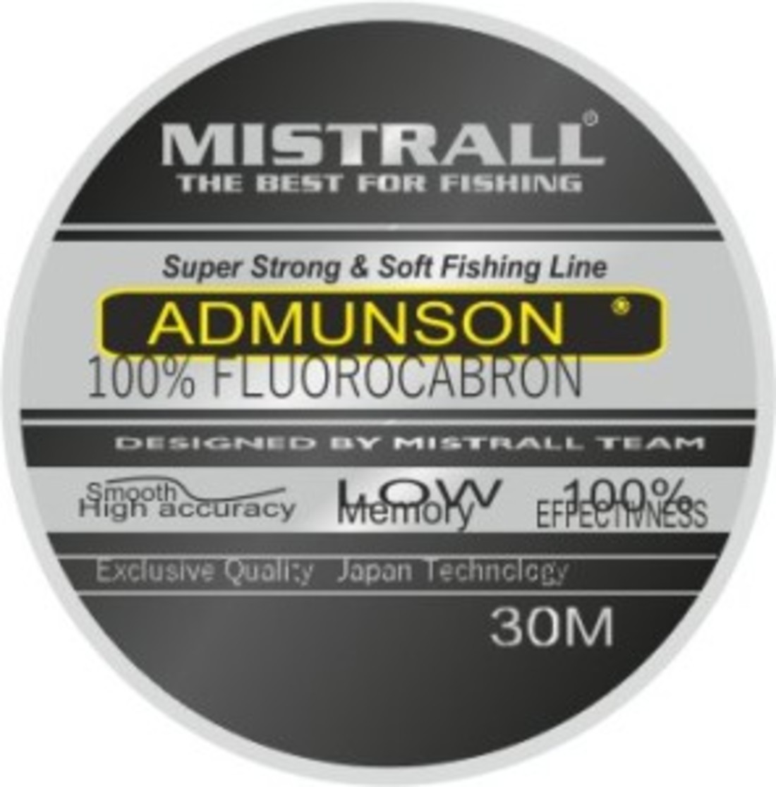 ADMUNSON 100% FLUOROCARBON - Висококласна волосінь, виготовлена з 100% флюорокрбону. Надзвичайно висока сійкість до стирання та UV випромінювання. Не видима у воді.