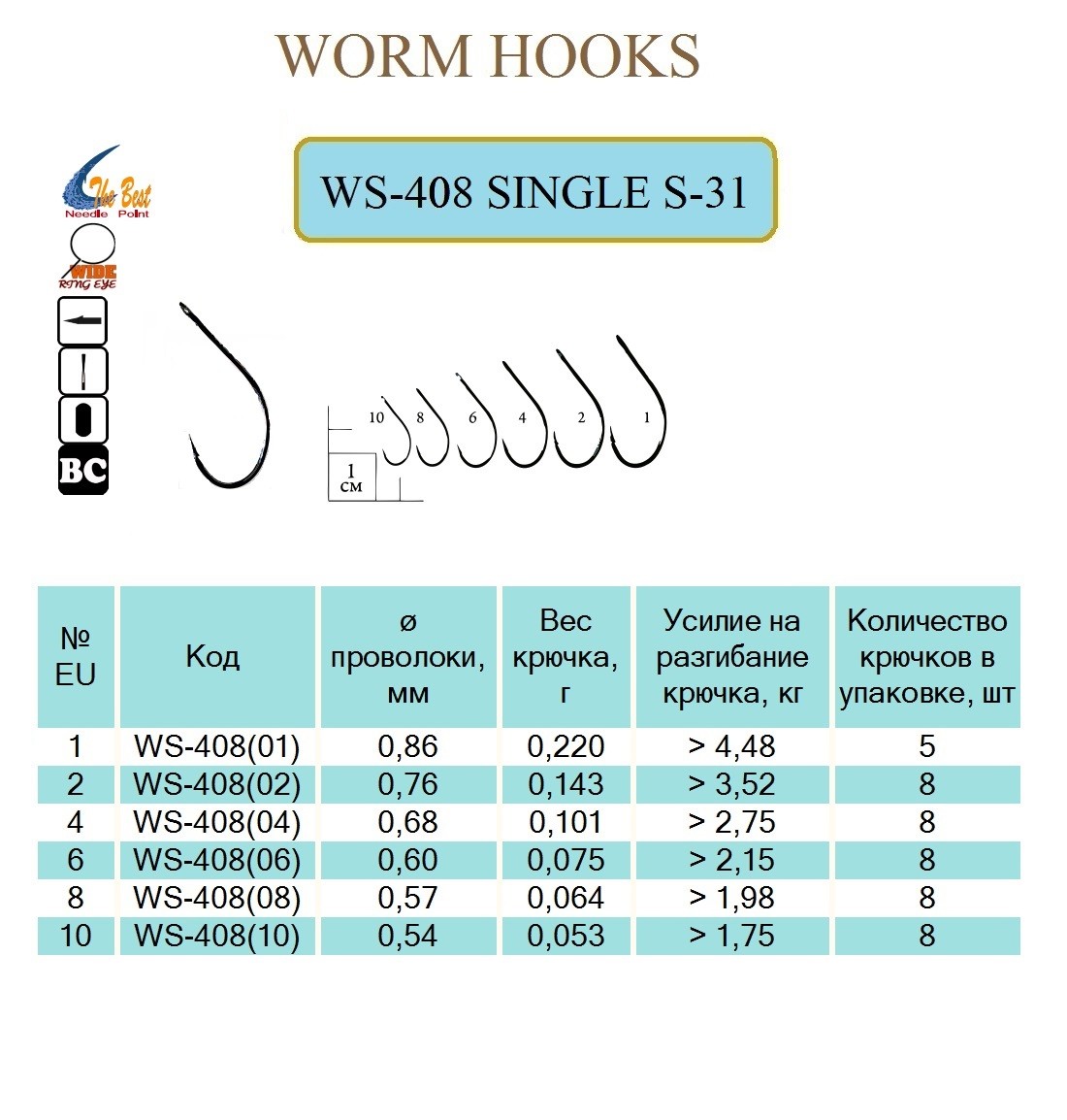 Крючки изготовлены из толстой проволоки и наделены большей прочностью. Рассчитаны для оснащения приманок (воблеры, вращающиеся и колеблющися блесны) крупного размера. Идеально подходят для шарнирной оснастки приманок микроджиговой и лайтовой спиннинговой ловли. Имеют большое ушко. Большое ушко даёт большую свободу крючку и не сбивает работу блесны
