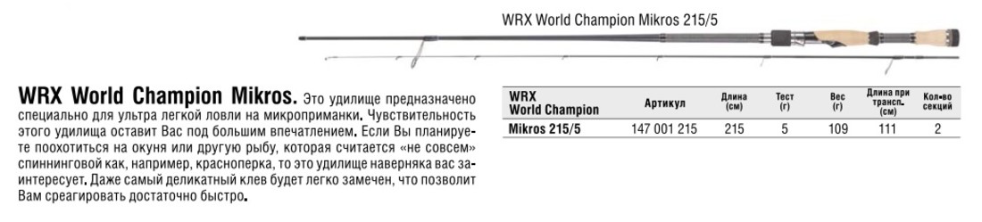 Спиннинг WORLD CHAMPION MICROS WRX 215 Konger
