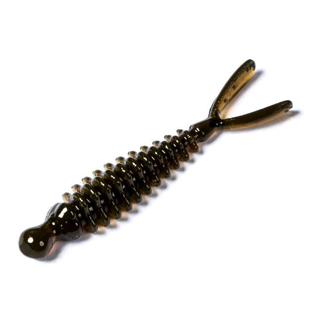 Имитация личинки насекомого. Обладает треугольным в сечении телом, ребристым по бокам и плоским снизу. В задней части есть раздвоенный хвостик, который при проводке создает дополнительную игру, провоцируя на атаку даже самого «заторможенного» хищника. Отлично работает на всех видах джиговых монтажей.